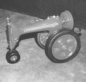 Choctaw, who is an antique collector and also restores antique tractors, came up with the idea one day 1 1/2 years ago by accident. "I had an old sewing machine sitting on a bench in my shop, where a friend was helping me restore a tractor. We had to keep moving the sewing machine around to make room for things. Finally my friend got tired of doing that and asked me what I was going to do with an old sewing machine anyway. That's when I came up with the idea of making a toy tractor out of it.