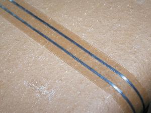 The peel-and-stick clear tape is 1 3/4 in. wide by 1/16 in. thick and encases two aluminum wires. "When a bird's foot touches it, a spark jumps, traveling through the bird's foot," Ravenelle says. "It's harmless, but it gets their attention."