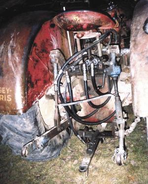 Massey Harris Tractor Fittes With 3-Pt. Hitch TRACTORS Hitches 32-4-19 "My Massey Harris 44 loader tractor doesn't have a factory 3-pt. hitch, so I built one for it using the lower lift arms and adjustment rods from a Fordson-Major tractor," says Frank Dyck, La Crete, Alberta.