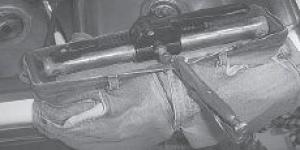 The load lock was originally 8 ft. wide and consisted of one pipe that telescoped inside another pipe, with a ratchet lever used to extend or retract the telescoping pipe. Lawman used a hacksaw to cut both pipes down to the width he needed and attached small steel plates to the ends.
