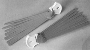The "sticks" in the set are made from high density polyethylene and measure about 6 in. long. Each stick is marked in 1/4 to 3/4-in. sizes for length, with a hole at the top end of the stick that corresponds to the correct bolt diameter.