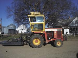The invasive trees were taking over his pasture, and he couldn't keep up cutting them by hand. So a couple of winters ago, Schneider revamped the old Fox chopper. The harvesting components were worn out, but everything else worked well. He removed the knife housing and blower and cut the frame off 3 ft. from the front. He left the engine, drivetrain and cab in place and fitted the front with 3-pt. hitch arms off a salvage tractor. He used the belt drive from the chopping housing to run a 30 gpm hydraulic pump. He added oil coolers from an old Deere pull-type swather and a 12-volt electric fan to keep the hydraulic oil from overheating.