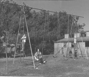 So he went to work building a 15-ft. high swing. He used 2 1/2-in. steel pipe for the top rail and 1 1/2-in. galvanized sq.