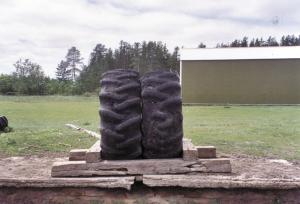"I already had the payloader tires and happened to have a cement slab to set the ties on. Without it eventually the dirt around the feeder would wear away," says Pierce. "I got the tires free from a local dealer. They're happy to get rid of old tires like these."
