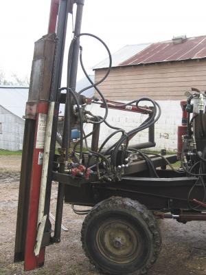 The post-driving rig has worked very well for Marah for about 6 years. He does acknowledge one change he would make if redoing it. "I would put in a larger hydraulic pump and a larger motor on the ground drive," he says. "That would increase ground speed significantly. As it is, if I am going very far, I load it on a trailer and haul it."