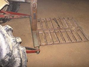 Getting a log to the conveyor is made easier with two other homemade devices. One is a carrier plate designed for a 3-pt. hitch. Bowman backs up to the middle of a log to be moved, slides the plate underneath, and lifts. For short distances, he doesn't even need to secure the log. Using the carrier he is able to position the log with one end on the conveyor. He then uses a log caddy to move the log forward and down the conveyor length.