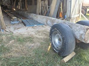 "The caddy is simply two wheels with a length of pipe between them," explains Bowman. "To help hold the log in place and away from the wheels, I welded a section of 12-in. channel iron to sleeves on the pipe."