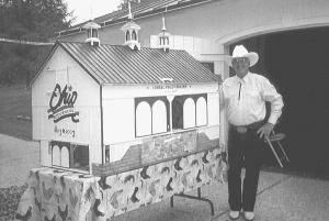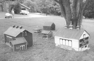Finley's wife, Pat, helps with some of the finishing touches ù making miniature feed sacks and bales, for example. She also paints the exteriors. She painted a Mail Pouch sign on the end of one of Finley's barns.