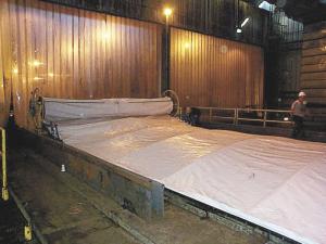 To seal the cover, Curry installed plastic channels on the walls. As the plastic cover is unrolled, a æPoly Fasteners' insert strip snaps the film into place and creates a tight seal.