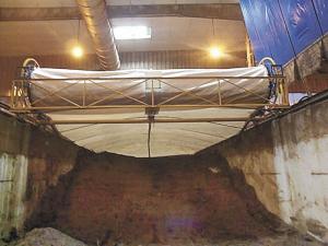 "We have a unique design that causes the cover to flex upward when it seals," explains Mike Curry. "Aluminum trusses in the cover arch upward like a bow pulled back when the cover is deployed. Without the arch, condensing moisture tends to pull the cover down into the compost."