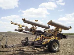 Rollers can be mounted on any 7 by 7-in. toolbar as long as it meets strength specifications. However, the company recommends mounting the rollers on an ETS "Cart" which has a rugged frame, 3 3/8-in. spindles with a 10-bolt heavy-duty hub, and 385/65R22.5 or 425/65R22.5 truck tires. The folding toolbar can be configured for 28 or 42-ft. widths, with each size folding to 14 ft. for road transport.