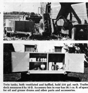 "Because it handles a big supply of fuel, most farmers could probably have it loaded in town, if necessary, for the same discount on fuel bulk delivered to their farms," says Dale Jooms, sales manager. He notes that "hauling fuel in reserve tanks for pickups poses a greater safety problem, and most of them don't hold enough to run several pieces of equipment all day."