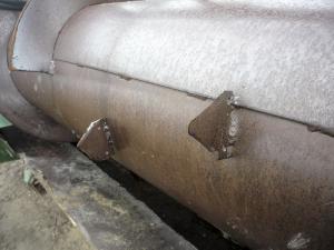Carpenter cut out the fingers originally found at the auger center. He welded about a dozen blades at roughly the same spacing as the old fingers.