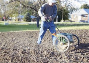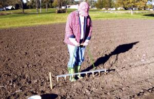 Sterling's wife, Sonja, followed behind planting the garlic and kicking dirt in the hole. They planted 1,400 garlic cloves in seven 100-ft. rows.