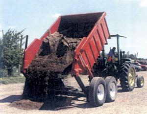 "It unloads fast and works great for hauling manure, topsoil, wood, rocks and many other jobs," says Clinton Nesseth, NTH, Inc., Barron, Wis. "It's especially effective at dumping wood compost into windrows. A lot of farmers will use it to haul manure out to the field during the winter and make piles on top of the snow, because new rules prevent spreading manure during the winter. The manure can then be loaded and spread during the spring."