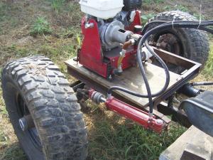 While the 10 hp unit can move the bale wrapper at a fast walking speed, it has difficulty on inclines. Grose plans to install more powerful hydraulics.