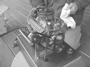 Not everything is what it appears. Moyer admits that while the carburetor looks like a four barrel, it is actually a twin with two 7.9/1,000-in. jets. Also, the coil and the battery can be found under the wood base of the engine.
