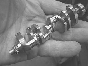 Moyer's finished engine has a 1.1 cu. in. or 18 cc displacement, a 0.006-in. bore and 0.487-in. stroke.