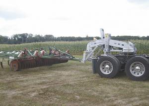 "The model 10F is strictly a ball-type drawbar and Cat. II lift," says Patterson. "The 15F has a bigger superstructure and is made to handle more weight. It can be equipped with a variety of hitches from drawbar and 3-pt. hitch to a pintle bar. The deluxe version is also equipped with hydraulics for connecting to farm equipment in the field."