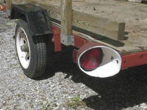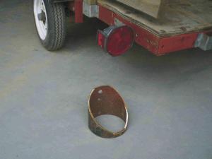 He started with a short length of 6-in. dia. well casing, which he cross-cut at an angle and then drilled mounting holes into it. Then he set the pipe over the tail light and bolted it onto the side of the trailer.