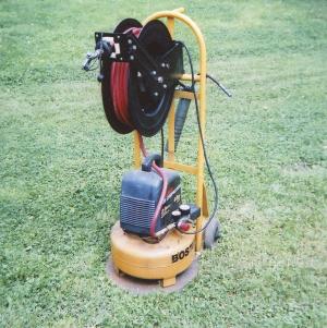 Compact Air Compressor On 2-Wheel Hand Truck FARM SHOP Miscellaneous Edward Miller Batavia N Y : “This is the handiest tool I’ve ever built for around the farm I mounted a new compact air compressor on a 2-wheel hand truck and bought a new hose reel to mount above it I can take it anywhere and run the hose out as needed I’ve also got a hook on back to hold a grease gun ”