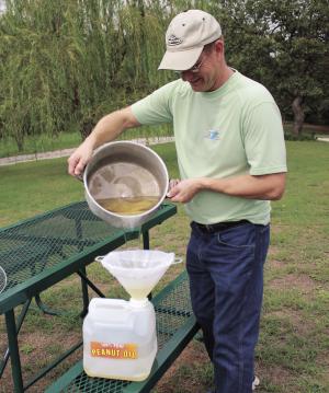 A barrel adapter can be screwed onto the bottom of the funnel, converting it from 3/4-in. garden hose threads to 3/4-in. pipe threads that fit onto many 5-gal. buckets and most 16, 30 and 55-gal. drums. “Once in place, there’s no need to hold the funnel so you have both hands free as you pour out of the container,” says Hester.
