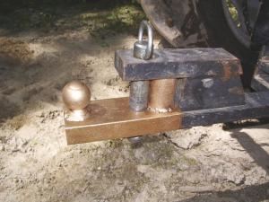 He says he built the unit because he got tired of having to bolt a ball hitch onto his tractor every time he wanted to switch trailers. “One day I might be pulling one trailer on the highway using a ball hitch, and the next day pulling another trailer through the woods or fields using a ring hitch. It was always a hassle to unbolt the ball hitch from the tractor drawbar.”