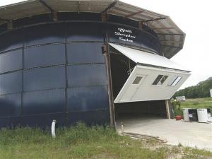 Marv Rubingh converted his 23-ft. tall, 62-ft. dia. Slurrystore into a shop. Built in 1979, it was still structurally sound. Rubingh started thinking about converting it even before he stopped using it for manure storage.
