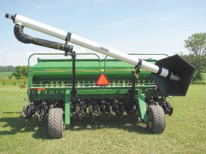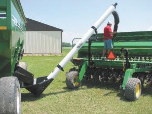 “Our new 8-in. dia. single auger seed-fill is designed specifically for Deere 1590 15 and 20-ft. grain drills. It cuts your seed filling time almost in half compared to standard 6-in. fill augers,” says Howard Green, Market Farm Equipment Ltd., Dashwood, Ont.