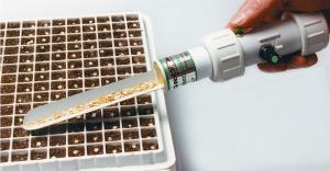 Seeding flats to start plants is slow and painstaking work when done by hand. Seeding tools from Gro-Mor make the job easy and accurate. Seeding tools run the gamut from the Vibro Hand Seeder with optional magnifying glass to air-powered units that drop individual seeds into entire flats in seconds.