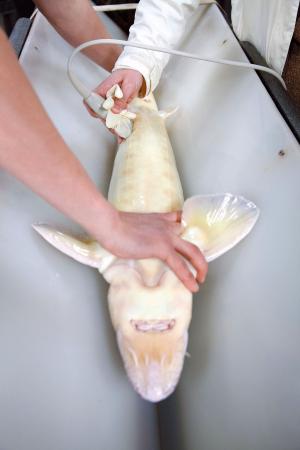 Besides adding an export market for the caviar in the future, Wall is developing a market for sturgeon meat. With no external sex organs, males can’t be culled out until they are about 4 years old (after sonograms).
