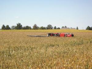In the winter of 2012-2013, after realizing that their crops withstood the previous year’s drought much better than conventionally-cropped land, Terry Dahmer decided to design a cover crop seeding system to fit his Miller Nitro 5240 high-clearance sprayer. Adam took that as a sign of opportunity and launched a business called Advance Cover Crops to supply seed to other farmers who showed an interest in the concept. He launched a website that shows several photos of cover crop activity on their farm. The site also includes information on several types of seed and references to research and articles on cover cropping.