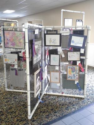 For the backdrop, the men used plastic screening material left over from another fair project. They secured it to the frames with 8-in. zip ties that were cut flush. Artwork is hung on the screen with small S-hooks.
