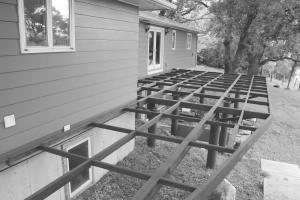 Bauer used 5-in. steel tube posts with 1/4-in. sidewalls. Each support is either embedded in concrete below the frost line or bolted onto a concrete wall. The stringers for the deck flooring are made with channel iron, I-beams and tubular steel that’s welded rather than bolted in place. “I didn’t attach it to the house because in our weather, with temperatures ranging from 100 above to 30 below, the steel will contract and expand 3/8 in. It’s self-supporting so it won’t move the house.”