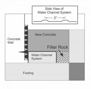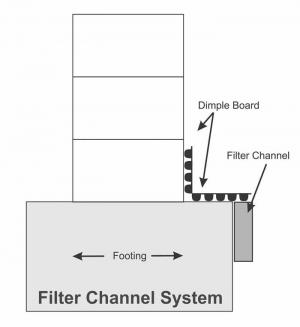 A new and unique filtered drain system has been proven effective in solving your basement water problems. Greg Resch developed a dimple board system that collects water from a wall and channels it across the footing to his unique filter channel system. The filter channel