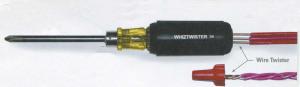 The Whiz Twister is designed to twist or untwist up to four no. 12 electrical wires, and can accommodate wire sizes ranging from 10 to 18 ga.
