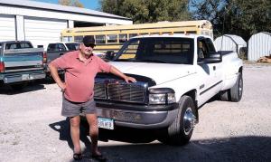 Clayton rolls more than 130,000 miles a year as a contract driver for Bennett Trucking of McDonald, Georgia. Although he lives in Iowa, technically he "lives in his truck," delivering 5th wheel camper trailers from Indiana manufacturers to dealers across the country. “I’ve been in every state of the lower 48, and several provinces in Canada,” Clayton says proudly. “I ordered the 3500 1-ton dually with a 5.9 engine in 2000, and I’ve been driving it ever since. It’s never caused me a lick of problems because I pay attention to regular maintenance and change the oil and filter every 10,000 miles. The engine has been overhauled once with new pistons, bearings, and a crank.”