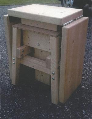 “About 5 years ago my father went through a serious skin cancer operation on his face,” says Weicker. “After radiation he was very weak. He could stand, but he couldn’t walk. We looked at ways to get my father in and out of his van. I didn’t want to spend the money for a specially-designed van, but I did have the idea to build an adjustable stool with hinged wings.