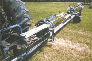Gerald Gould’s 20-ft. mower is a low-cost way to cut his 25 acres of CRP land. He didn’t want the expense of a large rotary mower, nor did he want to run his tractor at the high rpm’s needed for one. However, he needed to cover rough ground and wanted to be able to vary the cutting height.