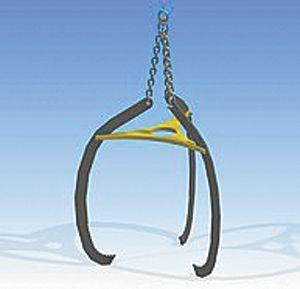 The 3 chains gather at a ring on a swivel that can be hooked to a loader arm, blade or other device. With the claws in place around the object to be lifted, the chains are gathered and pulled upward. This forces the arms to pivot at the plate and push the claws against the object being lifted, securing them in place.