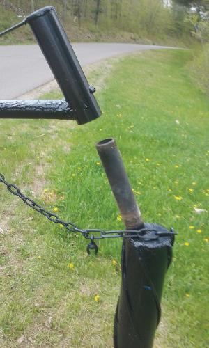 “There’s enough clearance for the snowplow driver to run his wing blade right under the mailboxes, which saves a lot of snow shoveling for us during the winter. Yellow marker tape on the frame makes it safe. A small chain keeps the boxes from rotating all the way around. My mail carrier says these are the best mailboxes on his route.”