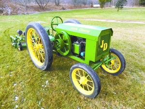“I’ve had the tractor in several parades and people really enjoyed looking at it,” Buskirk says. The tractor has a small fuel tank under the hood, a 12-volt battery, electric start and floorboards to round out its authentic appearance. Buskirk uses it around his yard for summer jobs, including grass mowing with a 60-in. trail mower that he built from a 3-pt. machine. For that project he installed a 15 hp Briggs motor with a vertical motor in the center of the platform and made a carriage with 4 wheels so the mower glides easily over the lawn. He uses the two homemade rigs to mow his own 1˝ acre yard and also mowed a 20-acre field for the Big Rapids Antique Farm and Power Show. “The 3-blade mower does a nice job, and my home made tractor works great pulling it.” Buskirk says.