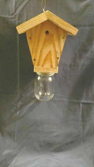 His Traps Stop Carpenter Bees FARM HOME Miscellaneous Jack Yeary traps carpenter bees around his place before they can drill holes in exposed wood on his house fences or outdoor furniture His traps work so well that he has started selling them “I’ve sold more than 25 of them to people in Kentucky Ohio Indiana and Michigan ” says Yeary “They are easy to use and work well ” Yeary’s traps look a bit like a birdhouse with a Mason jar hanging from the bottom Bees enter through one of 3 small holes near the top It is dark in the house but they see daylight below in the jar and go to it Once in the jar they are unable to find their way back out “The secret is getting the angle of the hole just right ” says Yeary Apparently his is just right One customer bought 2 traps and before she could hang them up the traps had 6 carpenter bees trapped inside “I use screws no nails and a tapered design similar to a birdhouse with a 4 to 5-in sq bottom ” says Yeary “They are about 12 to14 in tall without the jar ” Yeary sells his traps locally but he is willing to ship them They sell for $25 plus S & H Contact: FARM SHOW Followup Jack S Yeary 647 Cannery Hollow Rd Speedwell Tenn 37870 ph 423 869-3464