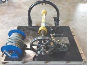 Barry used a General brand pressure washer pump and set it up to operate at between 2,500 and 3,000 psi. They mounted it, a hose reel and a power transfer shaft in block bearings on a 3 by 4-ft. square platform. Only the power shaft had to be fabricated at a local machine shop.