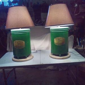 End Table Lamps Made Using Seed Canisters Off An Old Deere Planter