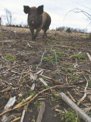 Another electric fence improvement Caleb made was to keep his piglets in their respective paddocks. Piglets can fit under electric wires that adult pigs can’t, so Caleb created what he calls “piglet fingers”. They’re made from 8-in. long pieces of electric wire that are wrapped tightly around the fence wire and then pointed toward the ground. Caleb placed these along his regular bottom fence wire (which is about 6 to 8 inches off the ground) at 2-ft. intervals. The result is that when piglets try to duck under the fence, they are shocked by the dangling piglet fingers. These can be made shorter or longer depending on how high the bottom fence wire is off the ground.