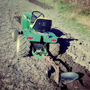 “At one time Deere made sleeve hitches for single bottom moldboard plows, but they stopped making them when they stopped making square fender tractors,” says Hallgarth. “My hitch is a copy of the Deere model, and it can also be used with other attachments including small disks and one-row cultivators. Brinly-Hardy makes all 3 of these products, and I sell them. My hitches are being sold by Hapco Inc., a company which supplies Deere lawn and garden tractor parts. I actually sell single bottom plows, discs, and one-row cultivators made by Brinly-Hardy.”
