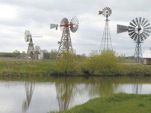 Windmill Collection Includes Foreign Models AG WORLD When Terry Rodman built a 43-ft Dutch windmill for his wife Kris he never dreamed it would lead to collecting vintage windmills from around the world and creating a business to restore and sell windmills And with his standing windmills in sight of a busy highway near Jasper Minn he also provides tours for interested people just driving by and groups that call ahead Among the 44 standing windmills are nine that have been shipped from other countries: South Africa China Australia Argentina Canada Brazil and the Netherlands “I don’t know of any other collectors that have as many foreign windmills as we have ” Rodman says Some he purchased after seeing them during international travels; others came through leads from other collectors “The double fan windmill made in Hutchinson Kan with two 12-ft fans is the favorite for most people Only three are in collections so they are rare ” he adds The retired welding and manufacturing shop owner built the replica because he couldn’t find one to purchase Most of the 100 or so windmills are original and often “basket cases” when Rodman receives them in pieces on a pallet With books photos research and help from other collectors he figures out how to put the parts back together and sometimes molds parts for others to cast To lift and transport windmills he modified a 1978 International tow truck He added 3 ft to the frame and created a bed to mount a boom that reaches 32 ft high With a hydraulic clamp he can raise the windmill and unbolt it from the legs and lay the windmill down Rodman’s windmills vary from 20 to 60 ft tall but he usually installs them on towers about 40 ft tall People who buy them typically use them ornamentally but they can be hooked up to pump water His collection includes wood and steel models from commonly known companies such as Dempster Eclipse Flint & Walling Monitor and Perkins and he also has an Iron Turbine made in Springfield Ohio An Aermotor with a 20-ft dia fan is his biggest windmill The 10-acre Windmill Park keeps the Rodmans busy from rebuilding the metal parts to making and painting the Cyprus wood blades to maintenance work to keep the windmills running Rodman says he has all the windmills he needs for now and they are all for sale For people interested in taking a tour he suggests calling to make a reservation Besides windmills his collection includes windmill weights and other accessories Contact: FARM SHOW Followup Terry Rodman P O 366 Jasper Minn 56144 ph 507 348-9621 or 507 204-0012 cell; krodman@frontier com