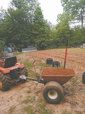 Henson already had the wheelbarrow, an industrial model with a deep bucket. He built a frame and tongue out of some old steel tubing and tach-welded a ball hitch off an old 4-wheeler to the tongue.