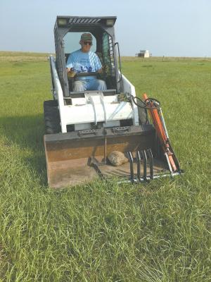 “It took 3 or 4 tries to get the lengths right, but now it works fine,” he says. “I can sit in the skid steer and pick rocks much longer than I could by hand.”